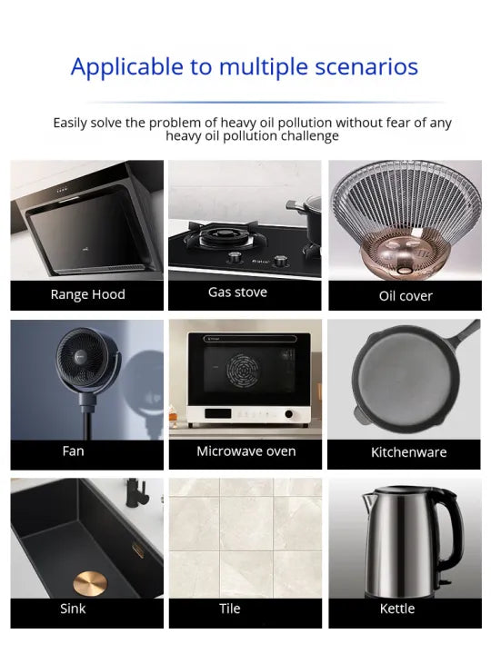 Struggling with tough kitchen stains? Our Japanese Multifunctional Kitchen Oil & Grease Stain Cleaner Foam is specially formulated to break down stubborn grease, dirt, and grime from all your kitchen appliances in seconds! 🔥 Whether it's your stovetop, range hood, oven, or countertops, this powerful foam lifts away deep-set oil stains effortlessly, leaving your kitchen sparkling clean! ✨